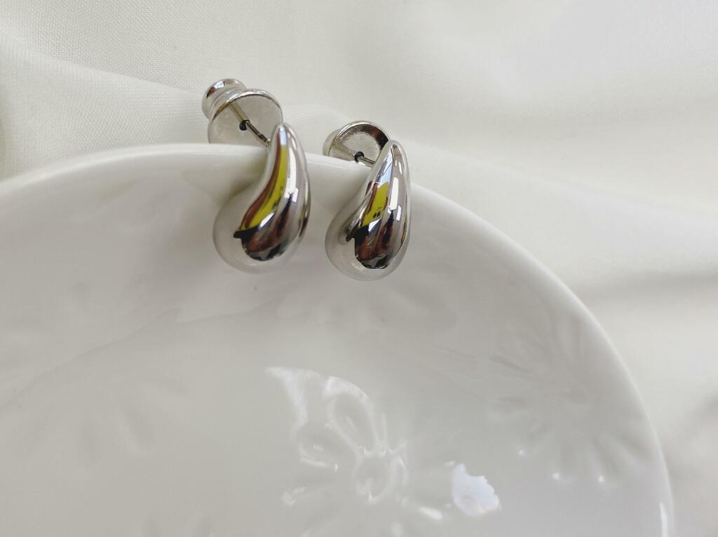 Brinco em formato de vírgula liso com tarraxa, banhado em ródio branco